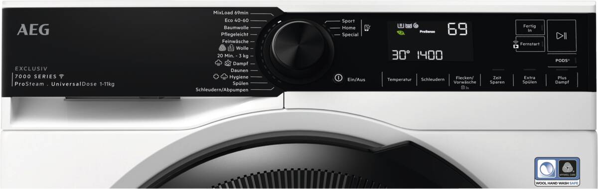 Waschmaschine, 11 kg Füllmenge, Schleuderdrehzahl U/min: maximal 1.600, ProTex Schontrommel, UniversalDose (Schublade für alle Waschmittelarten), ProSense Technologie (Zeit-, Wasser- und Stromsparend), ProSteam Technologie (Reduzierung des Bügelaufwandes bei Hemden und Blusen, ebenso Pflege von handwaschbare Wolltextilien), Programme und Optionen Daunen, Wolle/Handwäsche, Mengenautomatik, Inverter-Motor (bürstenlos, langlebig, zuverlässig und leise), Aquacontrol System mit Alarm – Vollwasserschutz, Steuerung über MyAEG App möglich, kompatibel mit Google Assistant, Energieeffizienzklasse A, Go Green Vertriebskennzeichen, Europa, Breite: 59,7 cm, Höhe: 84,7 cm, Tiefe: 66 cm