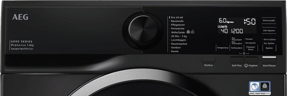 Waschmaschine, 6 kg Füllmenge, Schleuderdrehzahl U/min: maximal 1.200, Startzeitvorwahl, LED-Display, Restzeitanzeige, ProSense Technologie (Zeit-, Wasser- und Stromsparend), Programme und Optionen Leicht Bügeln, Daunen, Eco, Flecken, Hygiene, Outdoor/Imprägnieren, SoftPlus (bessere Weichspülerverteilung für ein weiches Tragegefühl auf der Haut), Zeitsparen, Mengenautomatik, Inverter-Motor (bürstenlos, langlebig, zuverlässig und leise), Aquacontrol Schlauch – Wasserstopp, Energieeffizienzklasse B, Breite: 59,5 cm, Höhe: 84,3 cm, Tiefe: 41,6 cm