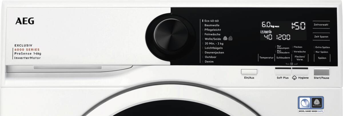 Waschmaschine, 6 kg Füllmenge, Schleuderdrehzahl U/min: maximal 1.200, ProTex Schontrommel, Startzeitvorwahl, LED-Display, Restzeitanzeige, integrierte Flüssigwaschmitteleinspülung, ProSense Technologie (Zeit-, Wasser- und Stromsparend), Programme und Optionen Leicht Bügeln, Daunen, Eco, Flecken, Hygiene, Outdoor/Imprägnieren, SoftPlus (bessere Weichspülerverteilung für ein weiches Tragegefühl auf der Haut), Zeitsparen, Mengenautomatik, Inverter-Motor (bürstenlos, langlebig, zuverlässig und leise), Aquacontrol Schlauch – Wasserstopp, Energieeffizienzklasse B, Europa, Breite: 59,5 cm, Höhe: 84,3 cm, Tiefe: 41,6 cm