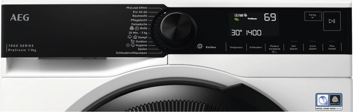 | ProSteam Technologie (Reduzierung des Bügelaufwandes bei Hemden und Blusen, ebenso Pflege von handwaschbare Wolltextilien) |