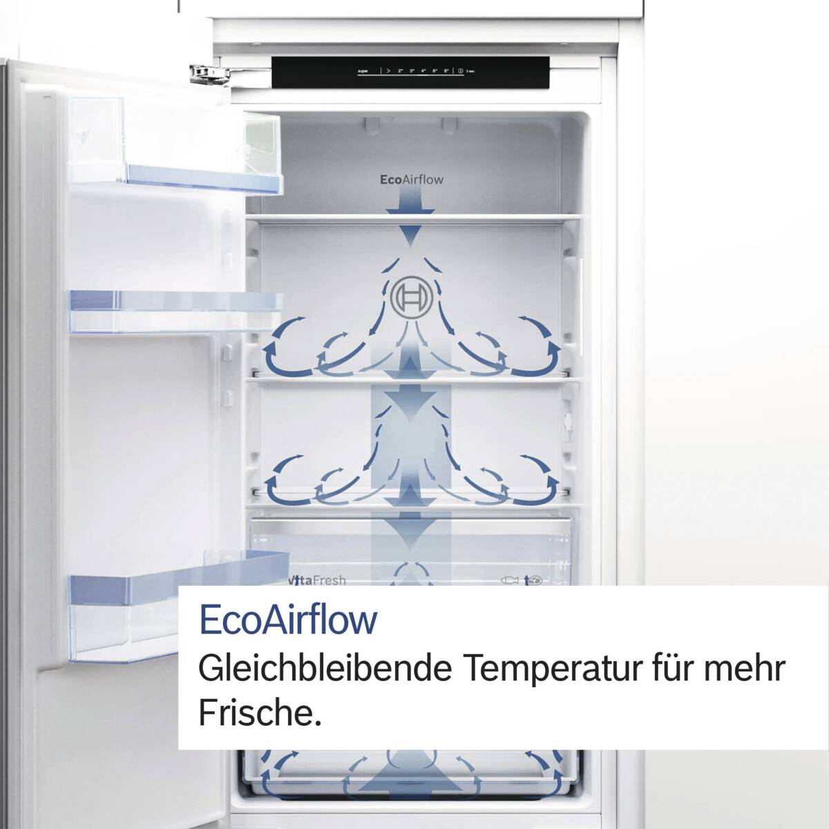 Einbau-Kühlschrank, integrierbar, Festtürmontage, Rauminhalt Kühlen: 172 l, Rauminhalt Gefrieren: 15 l, Abtauautomatik Kühlen, Super-Kühlen, Flaschenablage (liegend), Glasablageflächen: 4, Obst-/Gemüsebehälter: 1, LED-Beleuchtung, Energieeffizienzklasse D, Breite: 55,8 cm, Höhe: 122,1 cm, Tiefe: 54,8 cm