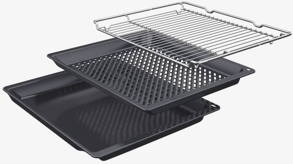 Im Lieferumfang erhalten Sie ein Air-Fry Blech, einen Kombirost und eine Universalpfanne. Mit seinem Energieeffizienzindex von 81.2 % und der Energieeffizienzklasse A+ punktet der Backofen auch in Sachen Energieeffizienz.