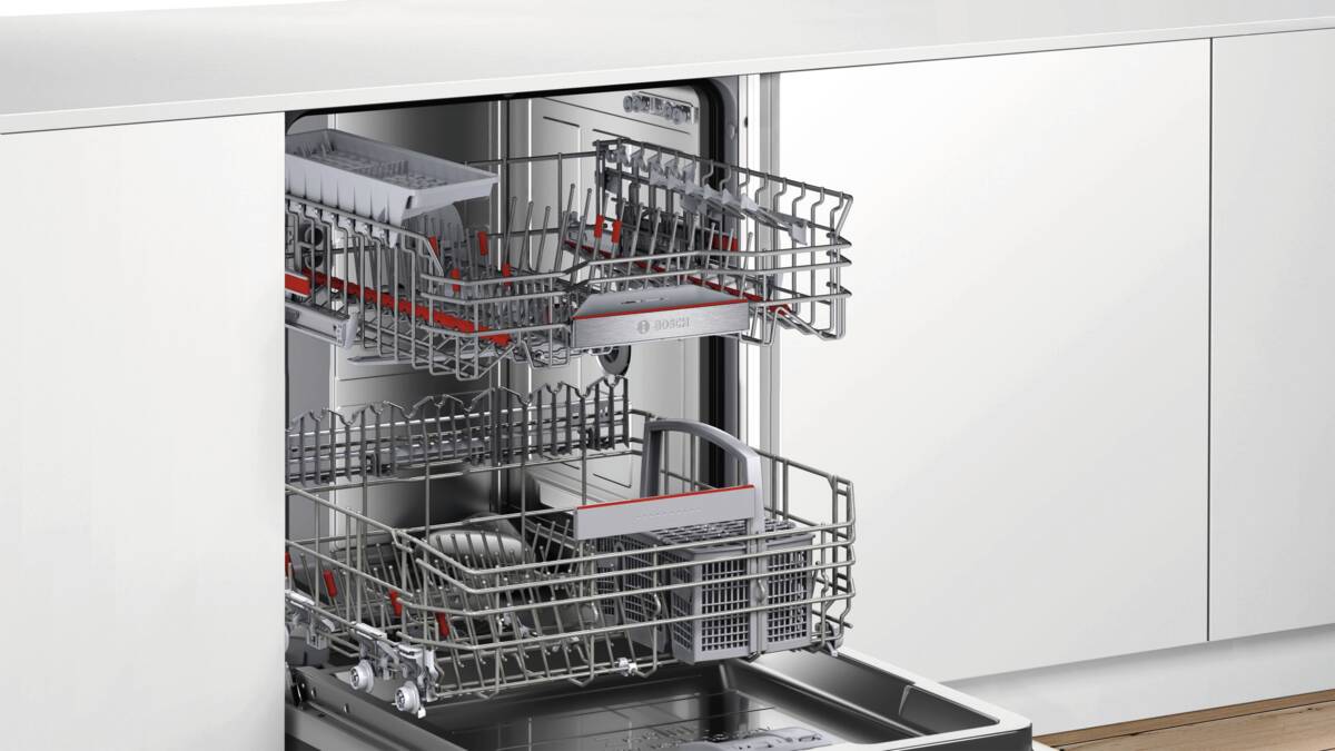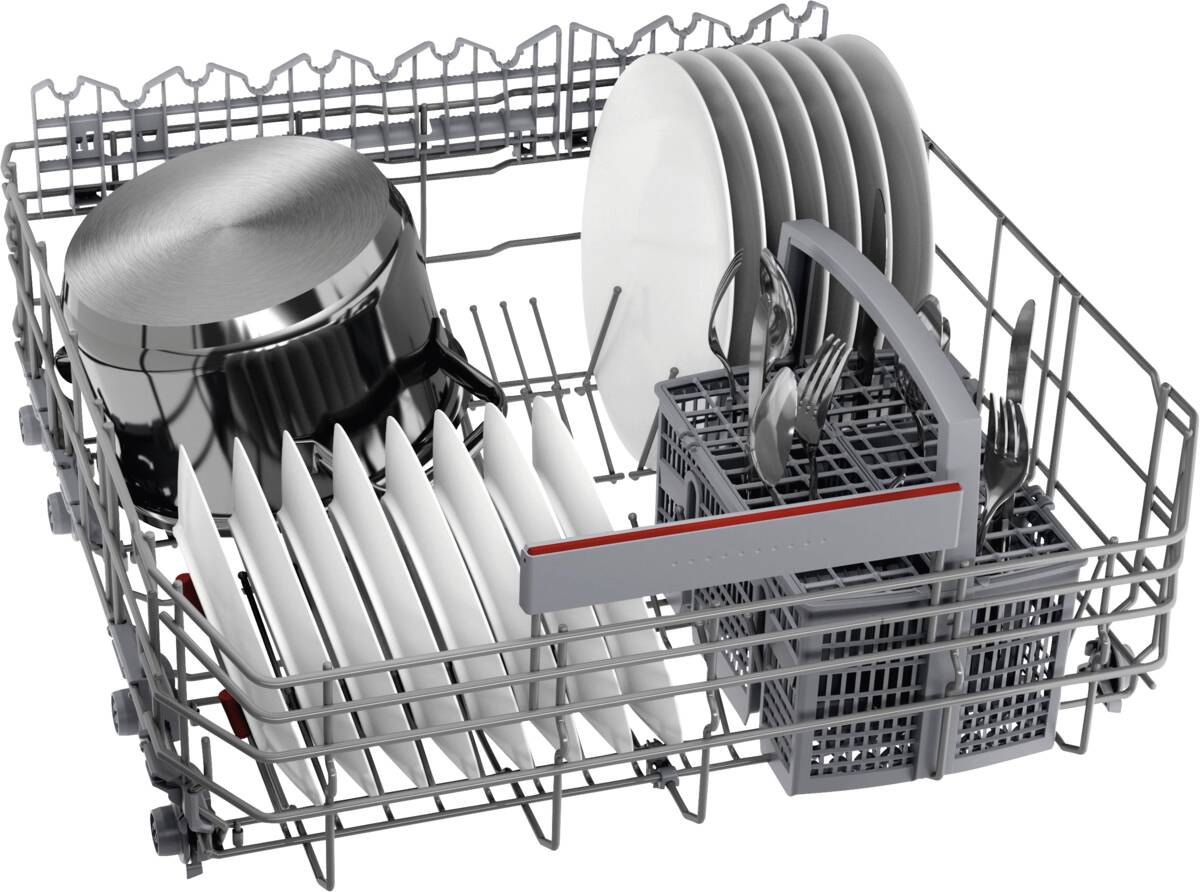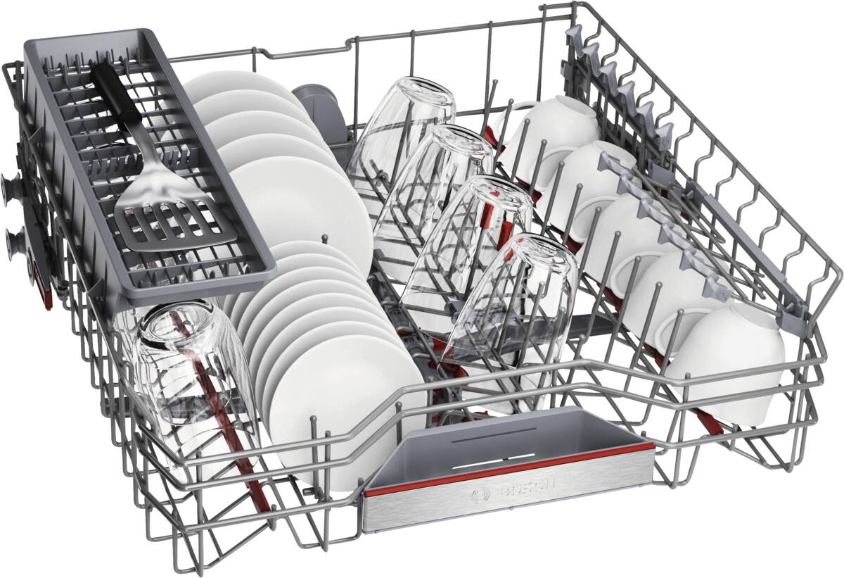 Einbau-Geschirrspüler, 8 Spülprogramme, 4 Temperaturen, Startzeitvorwahl, dosier Assistent, Display, Programmablaufanzeige, Restzeitanzeige, Oberkorb höhenverstellbar, 3-stufig, Selbstreinigendes Sieb, Aquastop, Home Connect (Steuerung per Smartphone oder Tablets möglich), per App unterstützter Datentransfer, per App steuerbar, Energieeffizienzklasse B, Breite: 59,8 cm, Höhe: 81,5 cm, Tiefe: 57,3 cm
