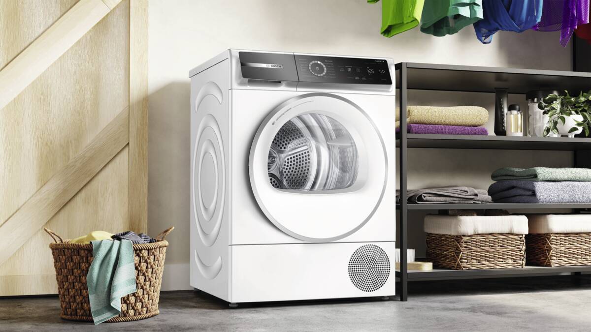 Wärmepumpentrockner, 8 kg Füllmenge, Sensitiv-Drying-Trommelsystem, Endzeitvorwahl, Nachlegefunktion, Display, Daunen, Hygiene, Knitterschutz, Schonen, Schranktrocken, Schranktrocken+, Sportwäsche, Zeitprogramme, Beladungsempfehlung, selbstreinigender Kondensator (automatische Flusenentfernung bei jedem Trockengang für konstant niedrigen Energieverbrauch), Home Connect (Steuerung per Smartphone oder Tablets möglich), per App unterstützter Datentransfer, per App steuerbar, Energieeffizienzklasse C, Breite: 59,8 cm, Höhe: 84,2 cm, Tiefe: 61,3 cm