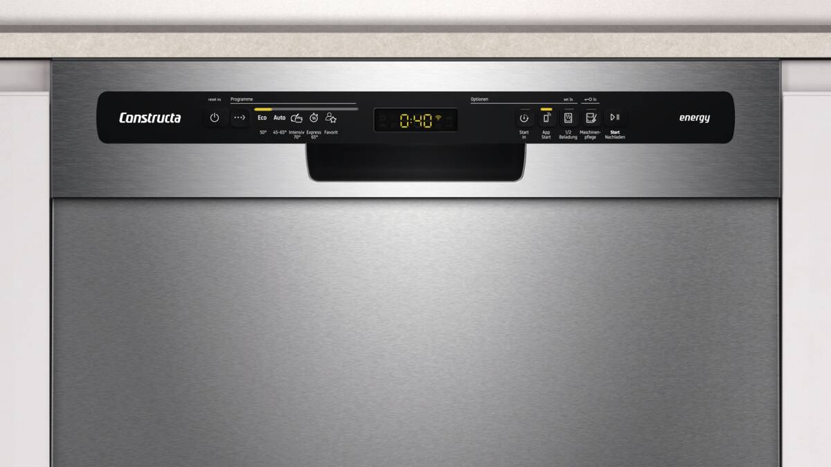 Unterbau-Geschirrspüler, 5 Spülprogramme, Startzeitvorwahl, dosier Assistent, Reiniger-Automatik (automatisches Erkennen des verwendeten Reinigers), Display, Klartextanzeige im Display, Restzeitanzeige, Oberkorb höhenverstellbar, Vario (mit zusätzlichem Platz für Kleinutensilien etc.), aqua-Sensor (spart Wasser und Energie), Selbstreinigendes Sieb, BLDC-Motor (bürstenlos), Aquastop, Home Connect (Steuerung per Smartphone oder Tablets möglich), Energieeffizienzklasse E, Breite: 59,8 cm, Höhe: 81,5 cm, Tiefe: 57,3 cm