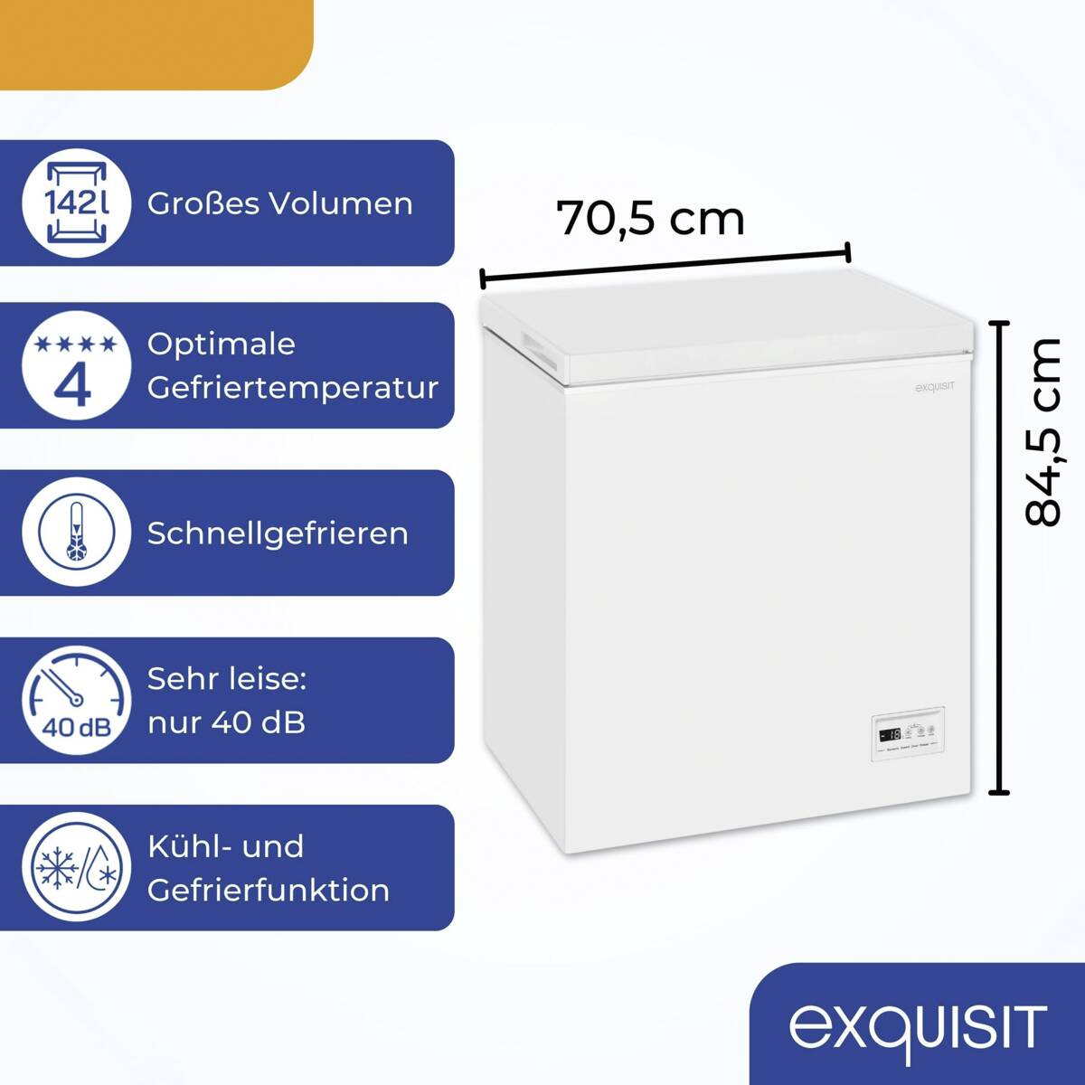 Schreibe die erste Rezension für „Exquisit Gefriertruhe 142L Super-Gefrieren LED-Anzeige Energieklasse E Rollen“