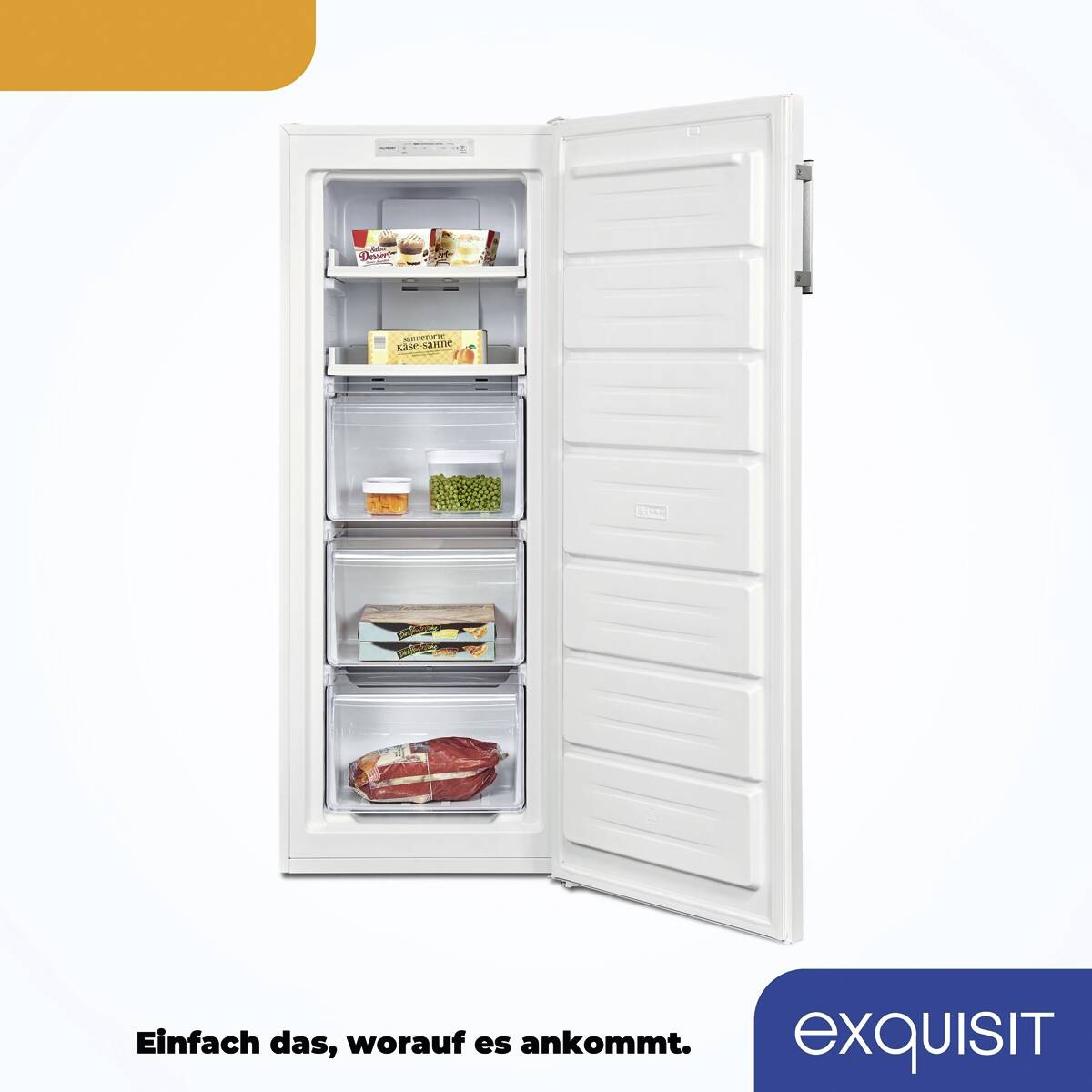 Angebot!Exquisit Stand-Gefrierschrank 161L NoFrost 3 Schubladen Weiß Energieeffizienzklasse C