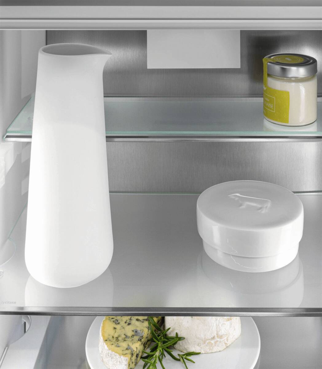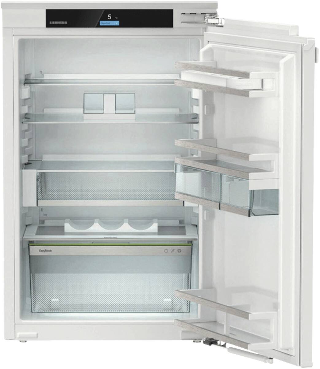 Einbau-Kühlschrank, Vollraum, integrierbar, Festtürmontage, Rauminhalt Kühlen: 137 l, Super-Kühlen, Flaschenablage (liegend), Glasablageflächen: 4, Obst-/Gemüsebehälter: 1, VarioSafe (Kleinere Lebensmittel, Packungen, Tuben und Gläser sind in diesem Schubfach optimal aufbewahrt), LED-Beleuchtung, Display, farbig, 2,4 Zoll, 6,1 cm, Touch-Funktion, digitale Temperaturanzeige, SmartDevice integriert (Steuerung über Internetverbindung möglich), per App unterstützter Datentransfer, per App steuerbar, Energieeffizienzklasse C, Made in Germany, Breite: 55,9 cm, Höhe: 87,2 cm, Tiefe: 54,6 cm