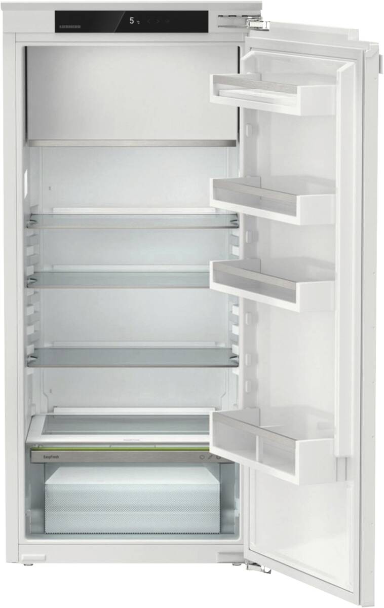 Einbau-Kühlschrank, integrierbar, Festtürmontage, Rauminhalt Kühlen: 167 l, Rauminhalt Gefrieren: 16 l, Super-Kühlen, Glasablageflächen: 4, Obst-/Gemüsebehälter: 1, LED-Beleuchtung, Display, Touch-Funktion, digitale Temperaturanzeige, SmartDevice fähig (Steuerung über Internetverbindung mit optional erhältlicher SmartDeviceBox möglich), per App unterstützter Datentransfer, per App steuerbar, Energieeffizienzklasse E, Made in Germany, Breite: 55,9 cm, Höhe: 121,3 cm, Tiefe: 54,6 cm