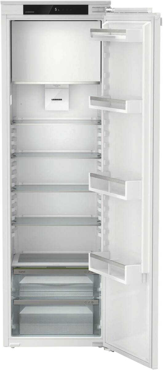 Einbau-Kühlschrank, integrierbar, Festtürmontage, Rauminhalt Kühlen: 259 l, Rauminhalt Gefrieren: 27 l, Super-Kühlen, Glasablageflächen: 5, Obst-/Gemüsebehälter: 2, LED-Beleuchtung, Display, Touch-Funktion, digitale Temperaturanzeige, SmartDevice fähig (Steuerung über Internetverbindung mit optional erhältlicher SmartDeviceBox möglich), per App unterstützter Datentransfer, per App steuerbar, Energieeffizienzklasse E, Made in Germany, Breite: 55,9 cm, Höhe: 177 cm, Tiefe: 54,6 cm