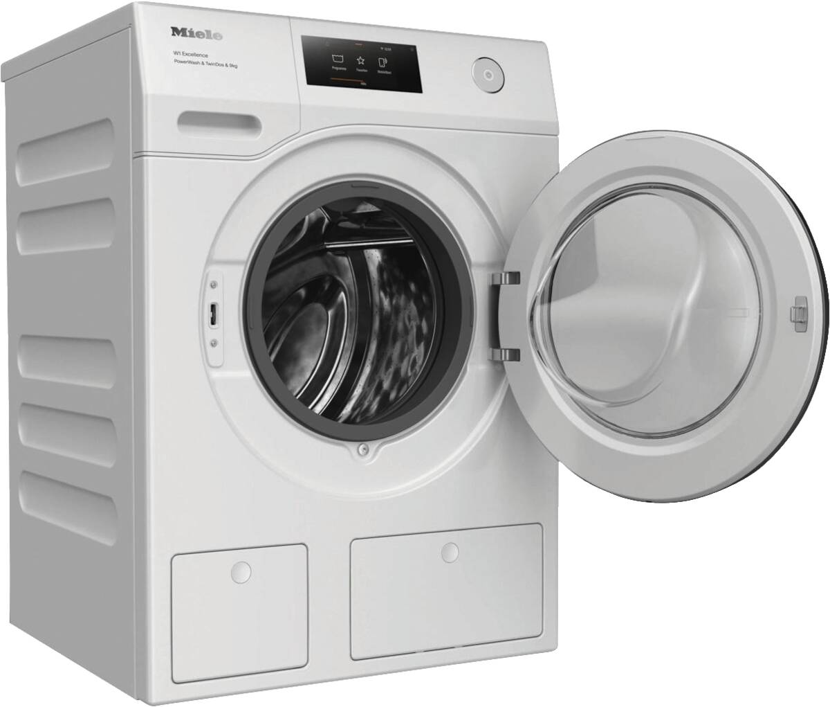 Waschmaschine, schräge Blende, 9 kg Füllmenge, Schleuderdrehzahl U/min: maximal 1.600, Schontrommel, Touch-Control-Bedienung, Startzeitvorwahl, Favoritenspeicher, AddLoad (Nachlegefunktion), Waschassistent, Display, Klartextanzeige im Display, Programmablaufanzeige, Restzeitanzeige, Tageszeitanzeige, Eco Feedback (Anzeige des vorraussichtlichen Wasser- und Stromverbrauchs), AutoClean-Einspülkasten (selbstreinigende Waschmittelschublade), CapDosing (Einfache Dosierung von Spezialwaschmittel, Weichspüler und Additiv mit Portionskapseln), TwinDos (automatische Dosierung mit 2-Phasen-System), PowerWash (Höchste Waschleistung und Schnelligkeit kombiniert mit höchster Energieeffizienz), Programme und Optionen AllergoWash, Vorbügeln, Daunen, Eco, Federbetten, Flecken, Gardinen, Imprägnieren, Kopfkissen, Niedrigtemperaturwaschen, Outdoor, Seide, SingleWash, Sportschuhe, Sportwäsche, Stärken, Wolle/Handwäsche, Mengenautomatik, LED-Trommelinnenbeleuchtung, Profi Eco-Motor (bürstenlos, sparsam, leistungsstark und verschleißfrei), Waterproof-System, Miele@home (vorbereitet für die Heimvernetzung), PIN-Code Verriegelung, per App unterstützter Datentransfer, per App steuerbar, kompatibel mit Amazon Alexa, Energieeffizienzklasse A, Go Green Vertriebskennzeichen, Breite: 59,6 cm, Höhe: 85 cm, Tiefe: 63,6 cm
