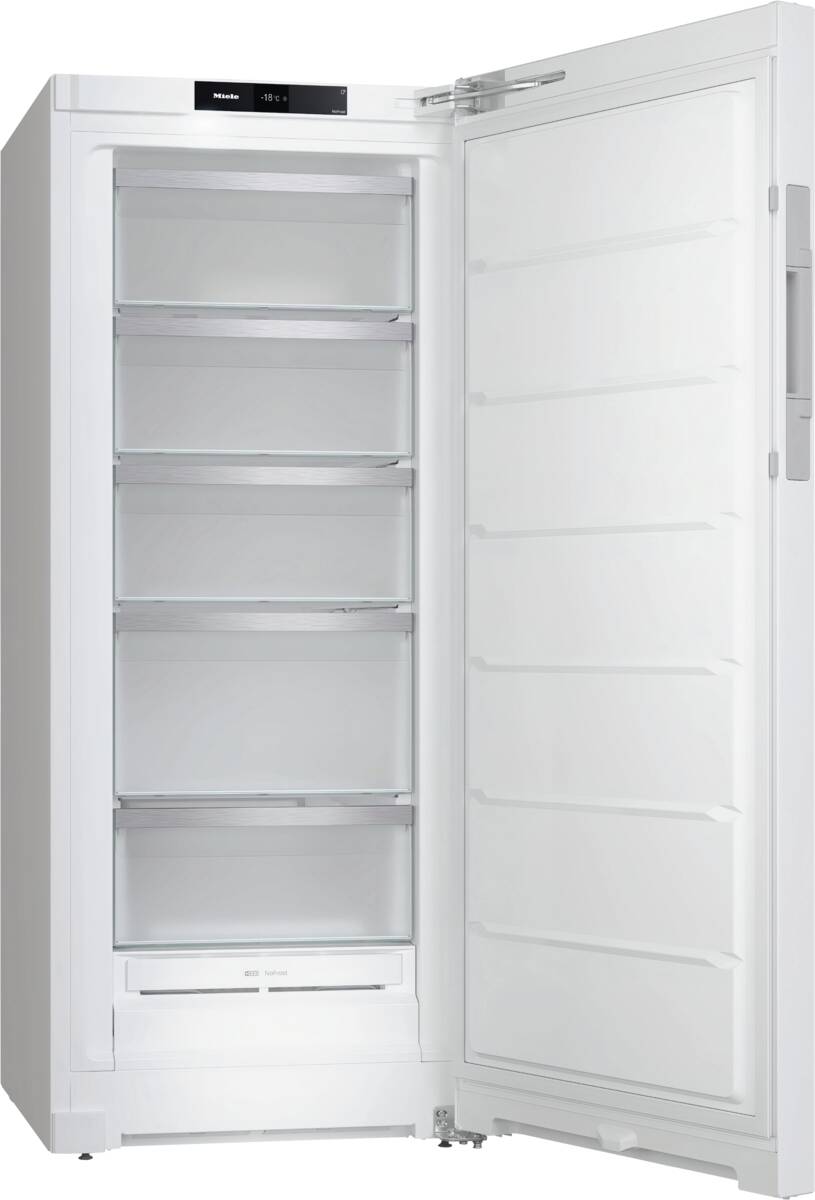 Stand-Gefrierschrank, Click2open (grifflose Geräte lassen sich per Hebelwirkung besonders leicht öffnen), 200 l Rauminhalt, Schubladen: 4, BigBox [XXL]: 1, Super-Gefrieren, NoFrost, Display, digitale Temperaturanzeige, Sabbatmodus, VarioRoom (Schubfächer können getauscht bzw. entnommen werden, sodass Ihnen beim Verstauen des Gefriergutes größtmögliche Flexibilit ät geboten wird), Betrieb bei einer Aussentemperatur von bis zu minus 15 Grad möglich, Miele@home (vorbereitet für die Heimvernetzung), per App unterstützter Datentransfer, per App steuerbar, kompatibel mit Amazon Alexa, Energieeffizienzklasse D, Breite: 60 cm, Höhe: 145 cm, Tiefe: 67,5 cm
