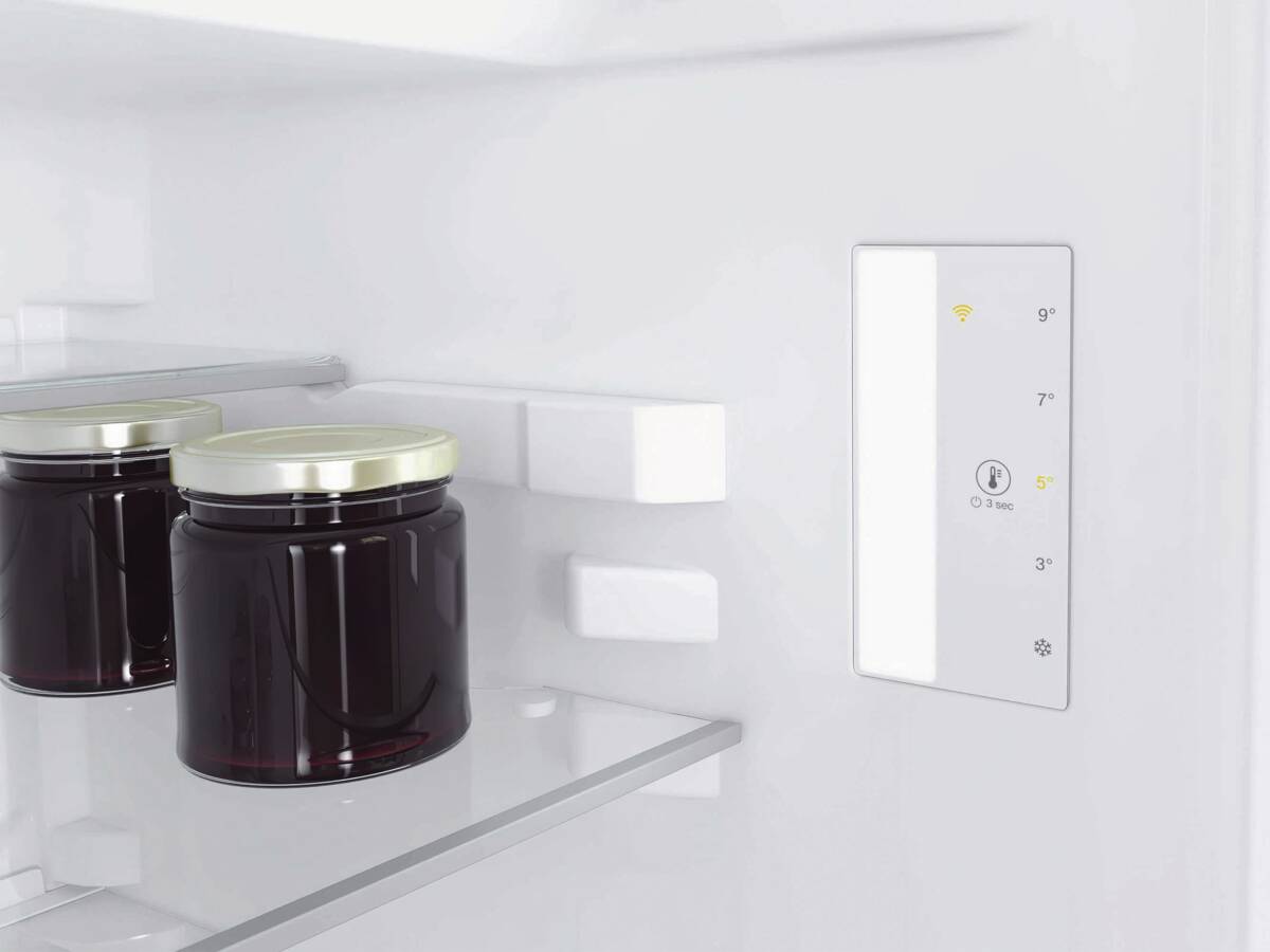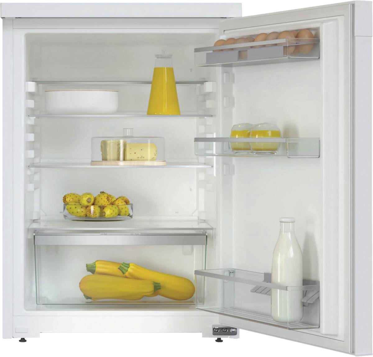 Tisch-Kühlschrank, Vollraum, Rauminhalt Kühlen: 141 l, Super-Kühlen, Frische-Behälter: 1, Glasablageflächen: 4, ComfortClean (Innentürabsteller können im Geschirrspüler gereinigt werden), LED-Beleuchtung, Miele@home (vorbereitet für die Heimvernetzung), per App unterstützter Datentransfer, per App steuerbar, kompatibel mit Amazon Alexa, Energieeffizienzklasse D, Breite: 60 cm, Höhe: 85 cm, Tiefe: 60,7 cm