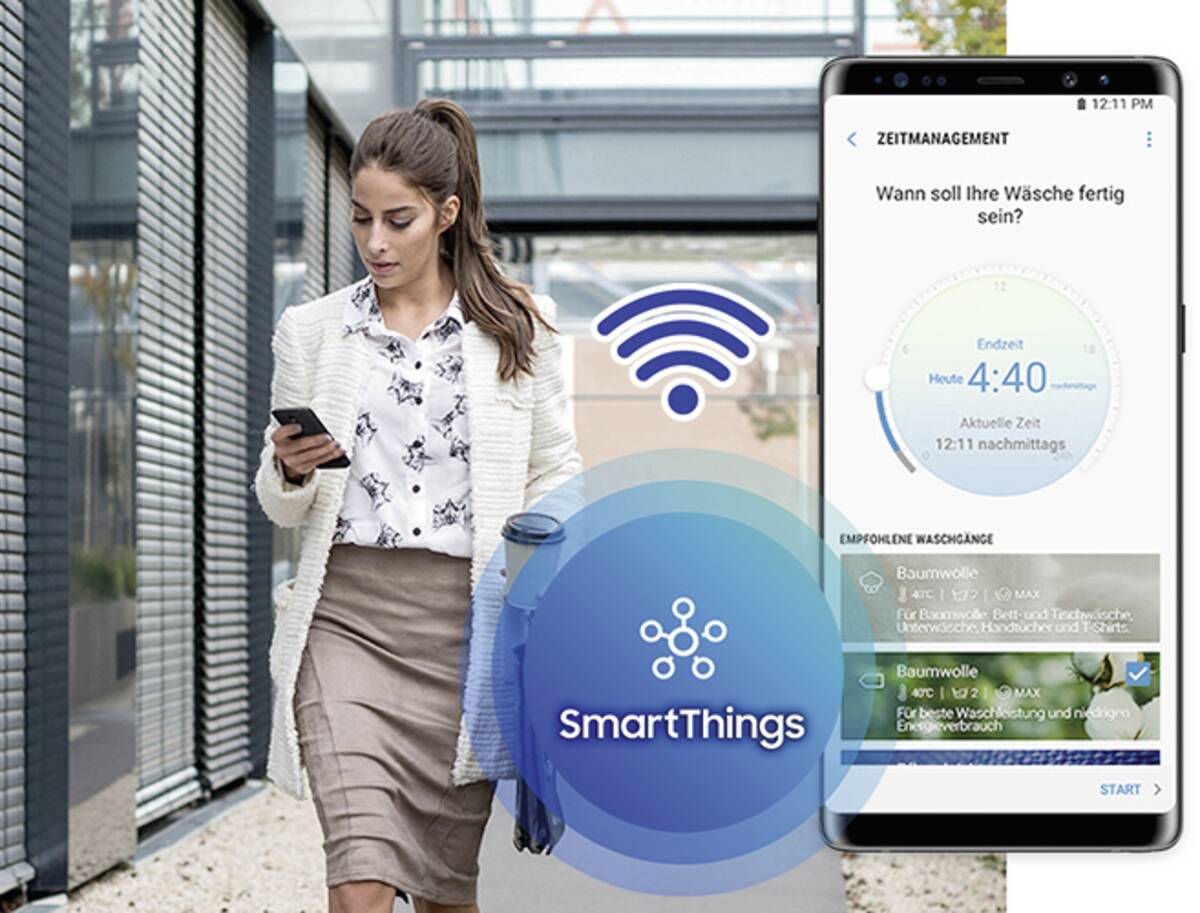 Waschmaschine, 8 kg Füllmenge, Schleuderdrehzahl U/min: maximal 1.400, Diamond Pflegetrommel, Endzeitvorwahl, Display, Restzeitanzeige, Programme und Optionen Baby Care, Buntwäsche, Eco, Flecken, Kalt, Outdoor, Sportwäsche, Spülen plus, Trommelreinigung, Wolle, XXL-Wäsche, Mengenautomatik, Digital Inverter Motor, Vollwasserschutz, WIFI SmartControl (Steuern und überwachen per APP), per App steuerbar, kompatibel mit Amazon Alexa, Google Assistant, Samsung Bixby, Smart Things, Energieeffizienzklasse A, Go Green Vertriebskennzeichen, Breite: 60 cm, Höhe: 85 cm, Tiefe: 63,5 cm