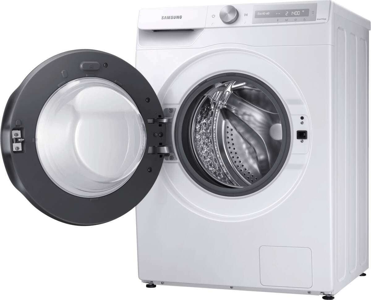 Waschmaschine, 8 kg Füllmenge, Schleuderdrehzahl U/min: maximal 1.400, Diamond Pflegetrommel, Endzeitvorwahl, Display, Restzeitanzeige, Programme und Optionen Baby Care, Buntwäsche, Eco, Flecken, Kalt, Outdoor, Sportwäsche, Spülen plus, Trommelreinigung, Wolle, XXL-Wäsche, Mengenautomatik, Digital Inverter Motor, Vollwasserschutz, WIFI SmartControl (Steuern und überwachen per APP), per App steuerbar, kompatibel mit Amazon Alexa, Google Assistant, Samsung Bixby, Smart Things, Energieeffizienzklasse A, Go Green Vertriebskennzeichen, Breite: 60 cm, Höhe: 85 cm, Tiefe: 63,5 cm