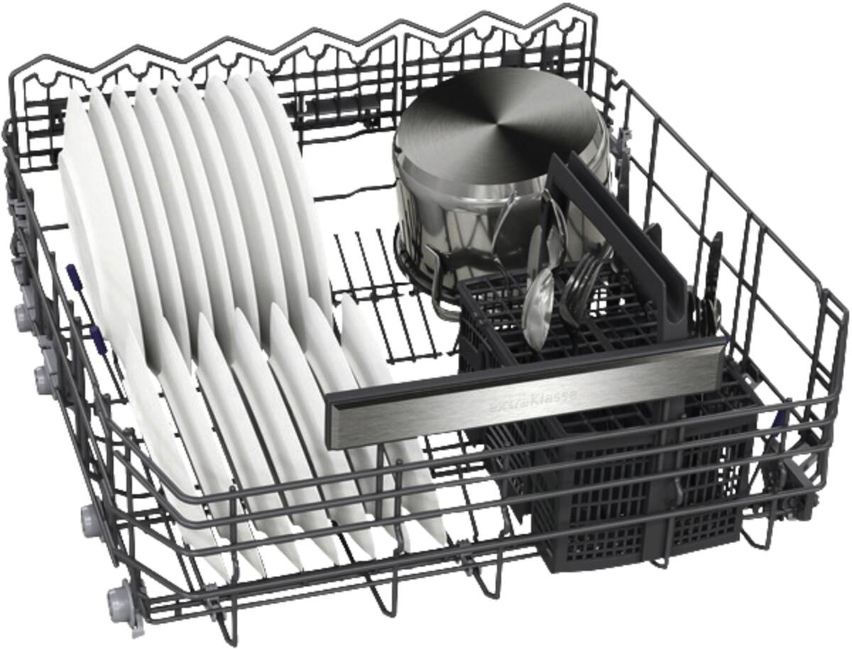Einbau-Geschirrspüler, Reiniger-Automatik (automatisches Erkennen des verwendeten Reinigers), Programmablaufanzeige, Restzeitanzeige, Oberkorb höhenverstellbar, 3-stufig, EmotionLight (LED-Innenbeleuchtung), aqua-Sensor (spart Wasser und Energie), IQdrive-Motor (bürstenlos, effizient, langlebig und leise), Aquastop, Home Connect (Steuerung per Smartphone oder Tablets möglich), per App steuerbar, Energieeffizienzklasse A, Go Green Vertriebskennzeichen, Breite: 59,8 cm, Höhe: 81,5 cm, Tiefe: 7,3 cm