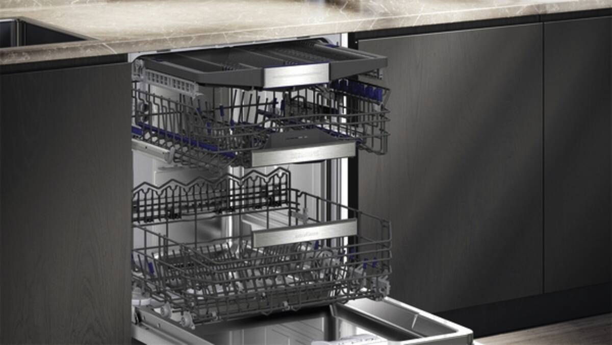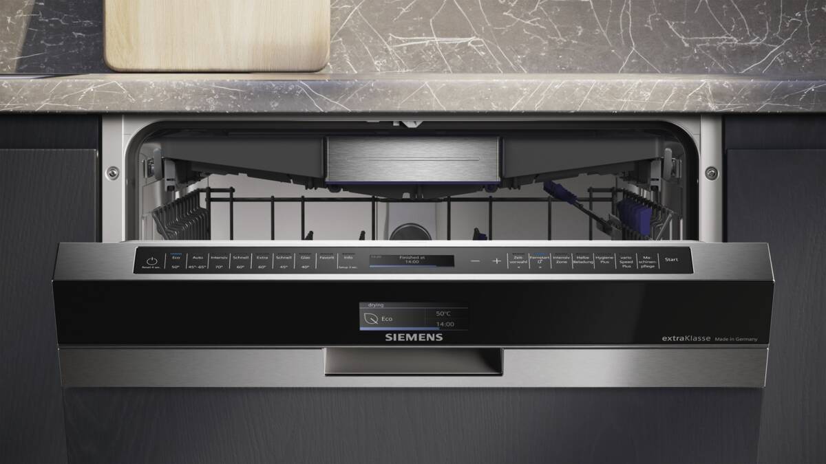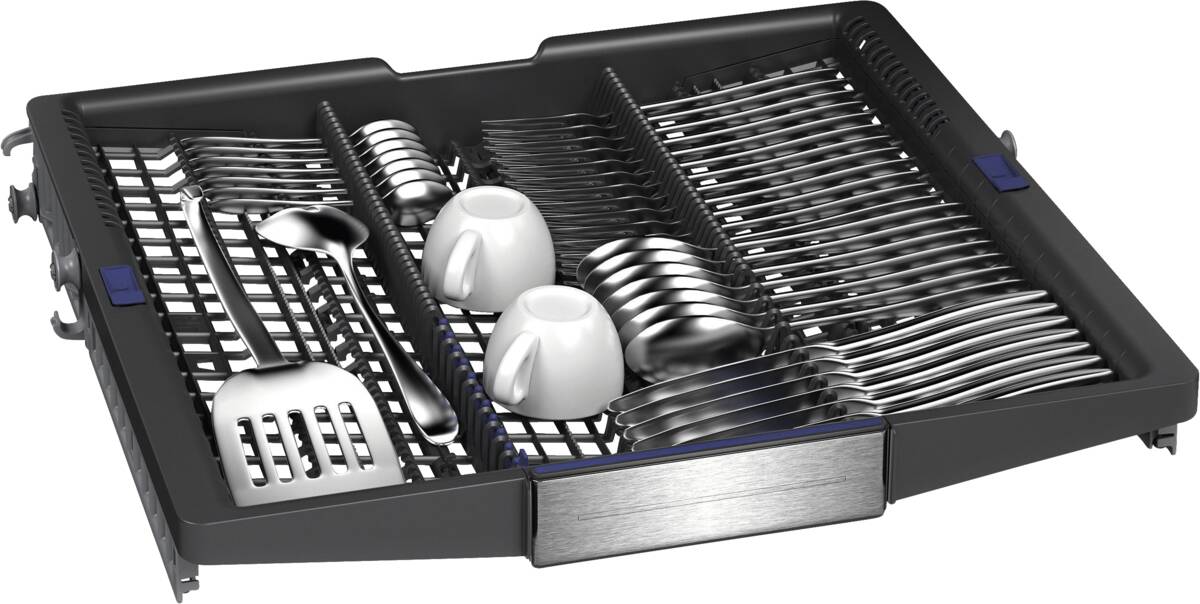 Einbau-Geschirrspüler, 8 Spülprogramme, Startzeitvorwahl, dosier Assistent, Reiniger-Automatik (automatisches Erkennen des verwendeten Reinigers), TFT-Display, Touchscreen Display, Klartextanzeige im Display, Oberkorb höhenverstellbar, 3-stufig, Vario Pro (mit zusätzlichem Platz für Kleinutensilien etc. und absenkbaren Seitenflächen, verfügt über farbige Touchpoints, die anze igen, wo die Seitenflächen abgesenkt oder die Pins umgelegt werden können), EmotionLight (LED-Innenbeleuchtung), blau, aqua-Sensor (spart Wasser und Energie), AutoOpen-Trocknung (automatisches Öffnen der Tür nach dem Programmende), Selbstreinigendes Sieb, IQdrive-Motor (bürstenlos, effizient, langlebig und leise), Aquastop, Home Connect (Steuerung per Smartphone oder Tablets möglich), Energieeffizienzklasse A, Go Green Vertriebskennzeichen, Breite: 59,8 cm, Höhe: 81,5 cm, Tiefe: 57,3 cm